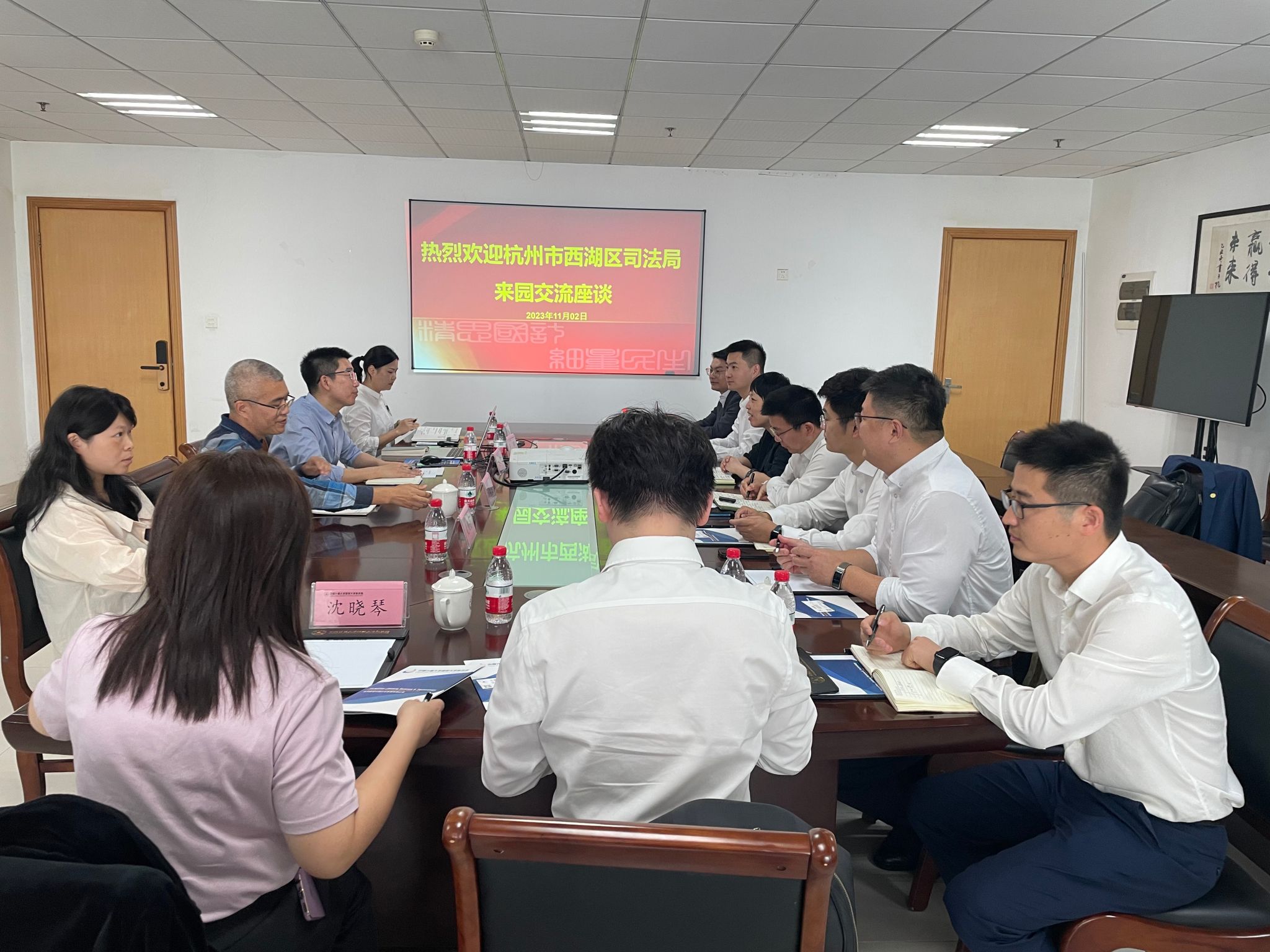11月2日上午,杭州市西湖区司法局携一批精专骨干律师来我校国家大学科技园交流座谈,校科研院王伟满,资产公司副总经理、科技园管理公司总经理方彬繁,副总经理董晔等人员参与了接待。