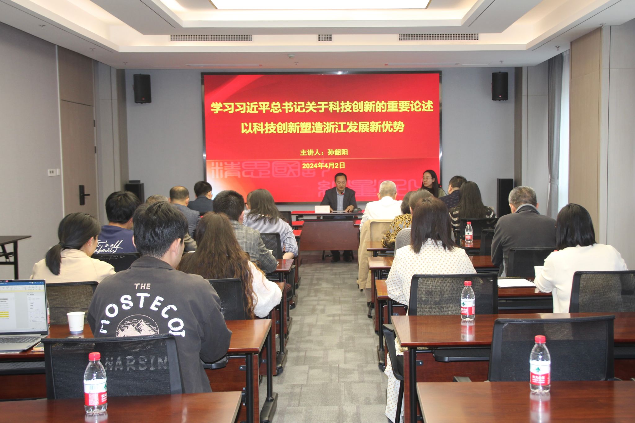 孙韶阳从我国科技创新面临的问题和挑战、习近平总书记关于科技创新的重要论述体系框架、二十大报告关于深入实施人才强国战略的相关部署等方面为大家进行了梳理,她指出要把握科技创新的新趋势与新任务,深入学习贯彻习近平总书记对于浙江科技创新的重要指示,高度重视科技创新工作,持续推动“八八战略”走深走实,在创新深化上再出实招、真招、硬招,全力实施“315”科技创新体系建设工程,打造三大科创高地升级版,加快形成世界重要人才中心和创新高地的战略支点。