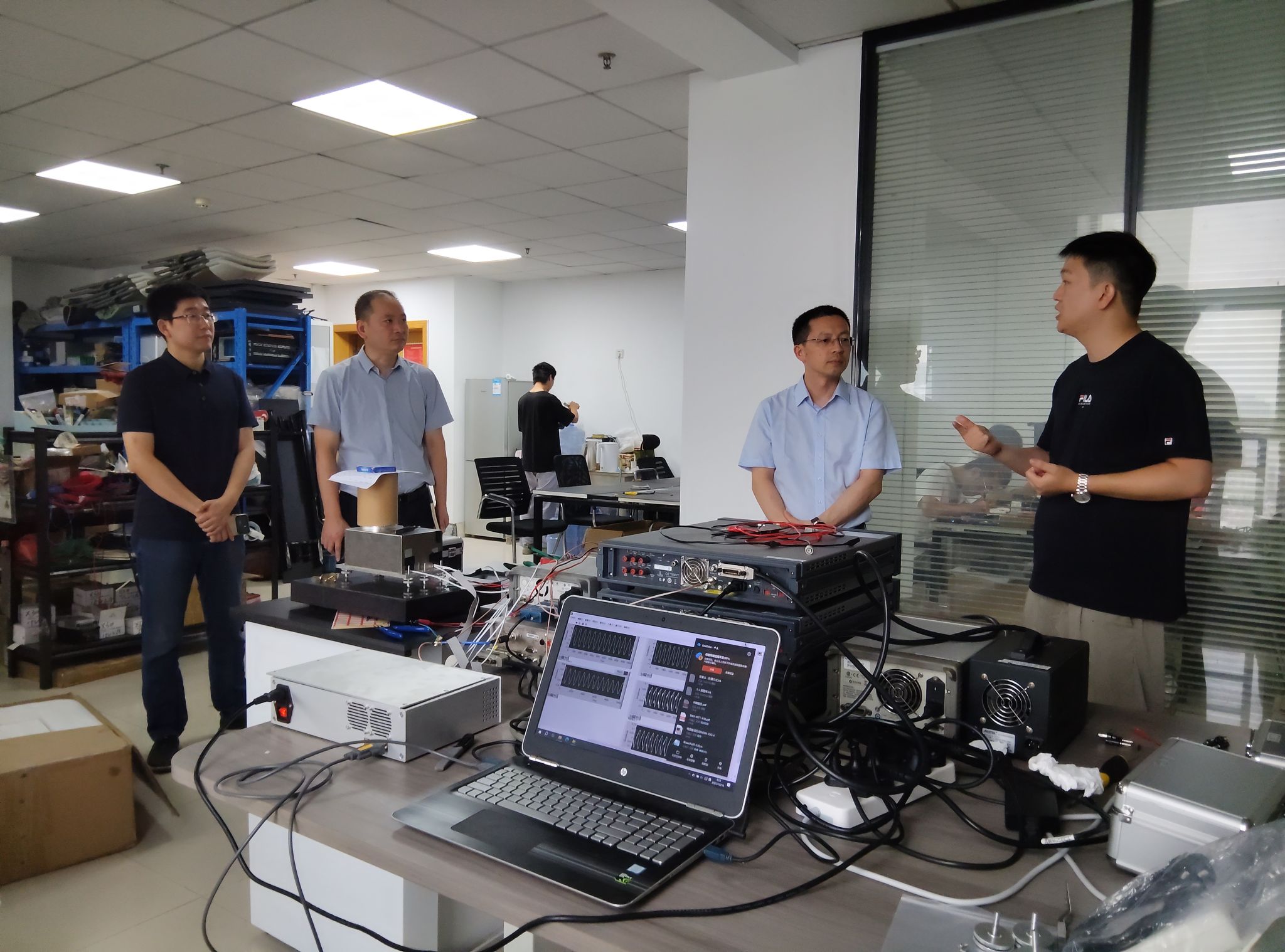夏昶祺首先调研了科技园建设情况,并走访了园区的企业代表。在企业现场,他认真观摩了最新研发成果,并与技术团队围绕可编程约瑟夫森量子电压标准驱动测控系统、多通道低热电势扫描开关系列等核心产品与技术展开深入交流。夏昶祺仔细听取了企业介绍,对其在相关领域取得的创新成果表示肯定,并鼓励企业持续深耕前沿技术,将学校的学科优势与市场需求紧密结合。