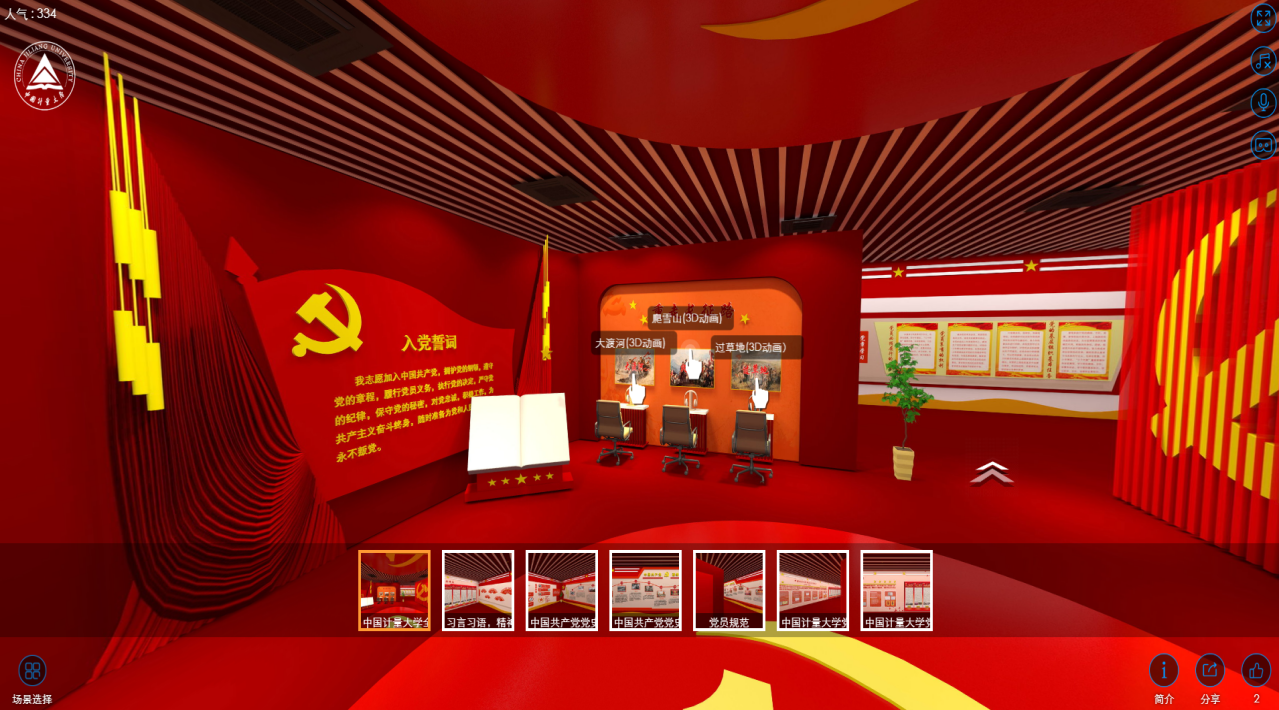 与此同时,园区校友企业杭州智瀑信息科技有限公司团队为中国计量大学打造了VR党史党建展厅,致敬党的峥嵘光辉岁月,为建党百年献礼。
